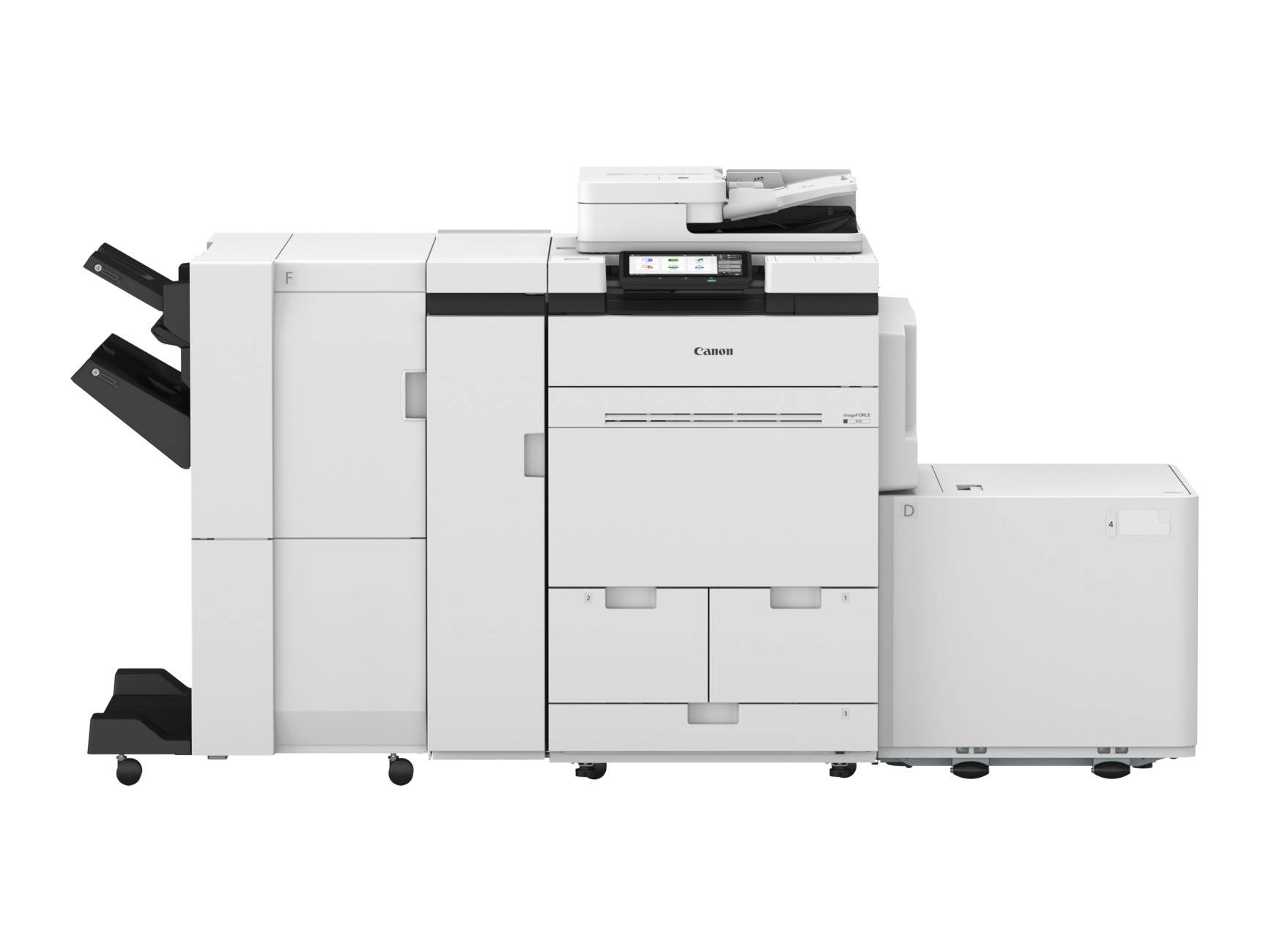 2.400 dpi Druckqualität, Vorder-Rückseiten-Registerhaltigkeit, 300 g/m² Papiergewicht, Medienunterstützung von Umschlägen bis zu beschichtetem und geprägtem Papier sowie vielfältige professionelle Finishing-Optionen.